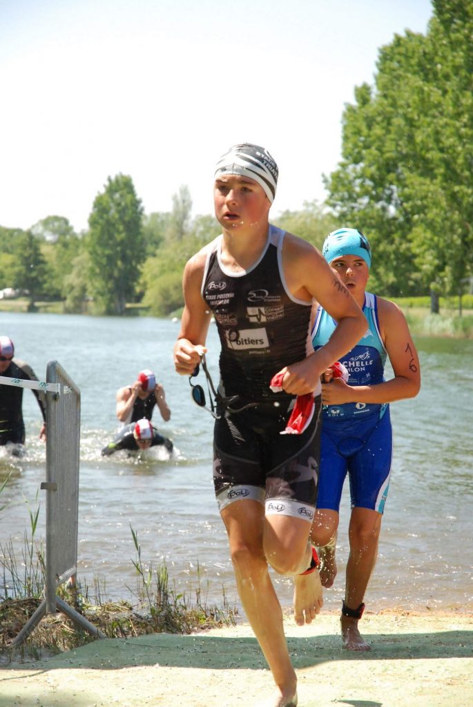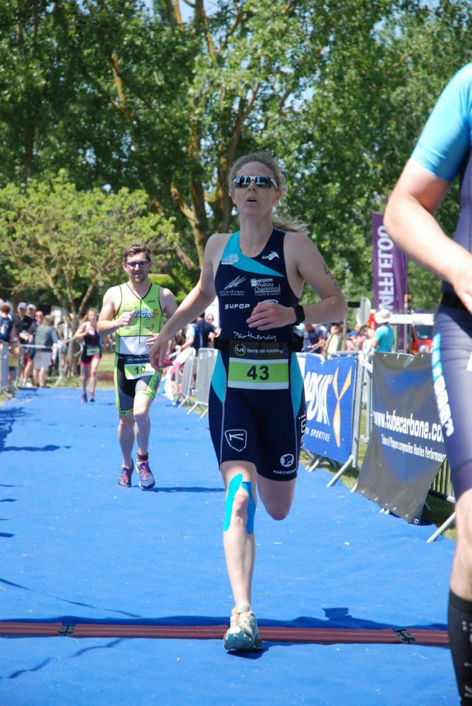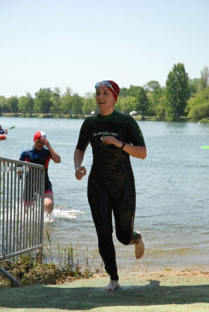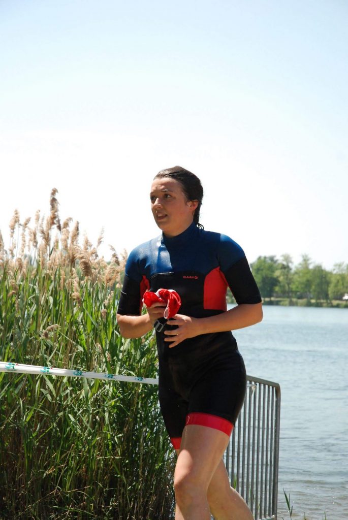 Vous enlevez vos lunettes et votre combi. Vous mettrez votre dossard dans le dos pour la partie vélo.